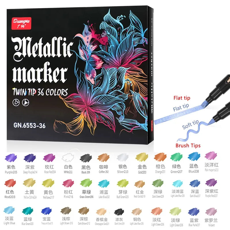 A tinta acrílica de alta pigmentação das Rotuladores ArtDual assegura que cada color permaneça vibrante y resistente, tanto em ambientes internos quanto externos, potencializando a beleza y durabilidade de suas obras de arte. Seja para revitalizar objetos de decoração, criar murais atraentes ou personalizar acessórios y roupas, estes marcadores oferecem um fluxo de tinta consistente y uma aplicação sem esforço.